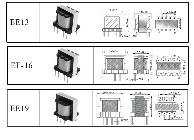 EE5/ EE8.3/ EE10/ EE12.8/ EE13/ EE16/ EE19/ EE22/ EE25/ EE28/ EE30/ EE32/ EE33/ EE34/ EE35/ EE40/ EE42/ EE55/ EE65/ EE70
