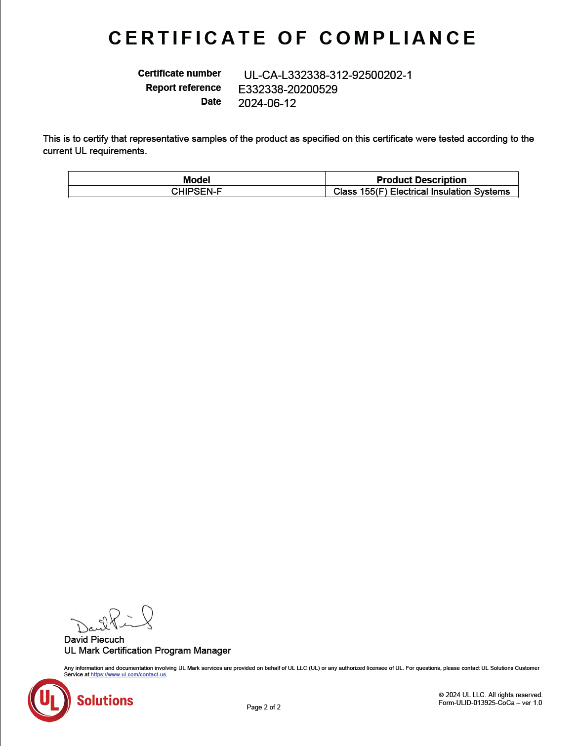 UL-Class H 證書